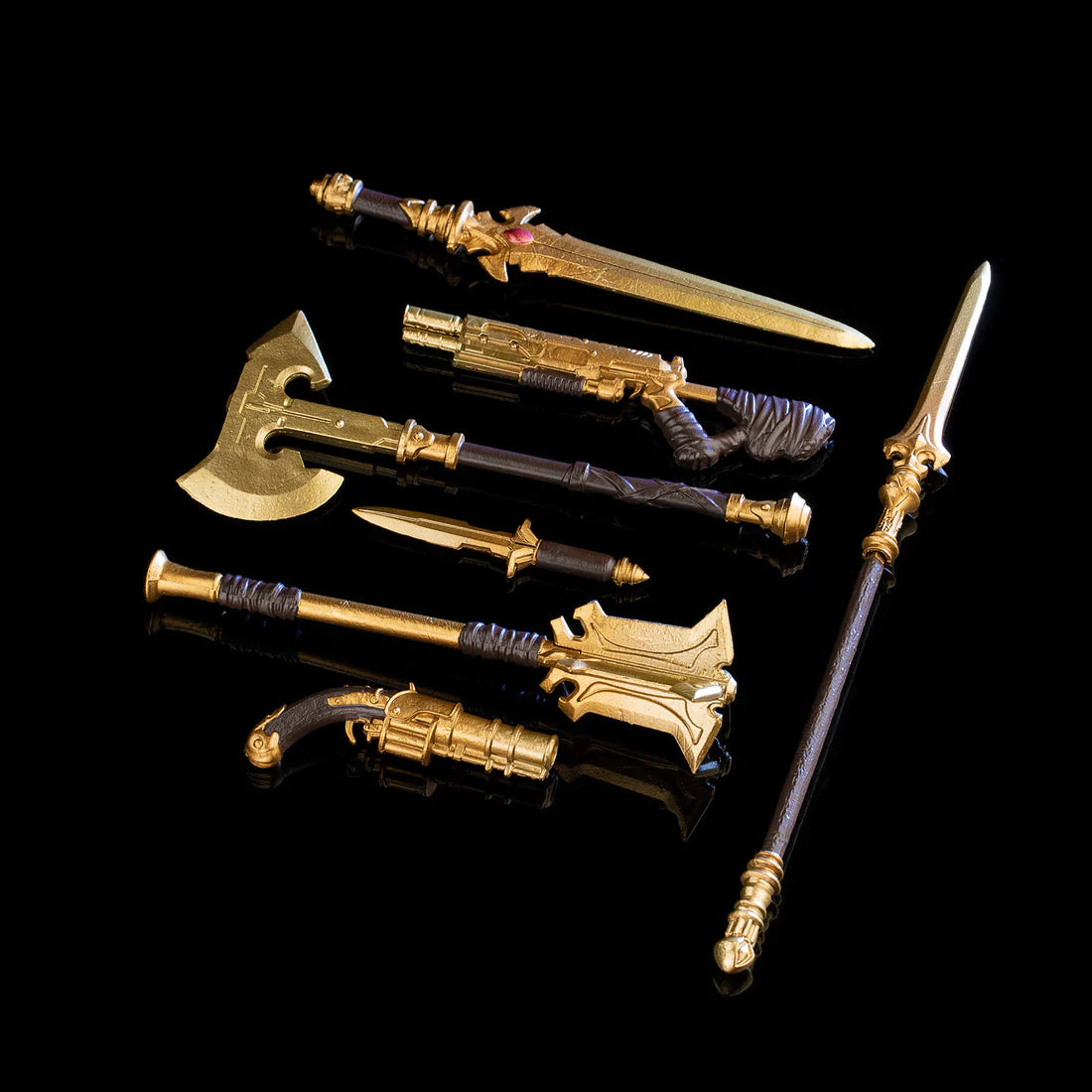 - 6-INCH-SCALE COLLECTIBLE GOLD SET: Fans, collectors, and kids alike can enjoy this 6-inch scale weapon set meant to enhance your action figure arsenal for Spero’s Animal Warriors of the Kingdom comics.