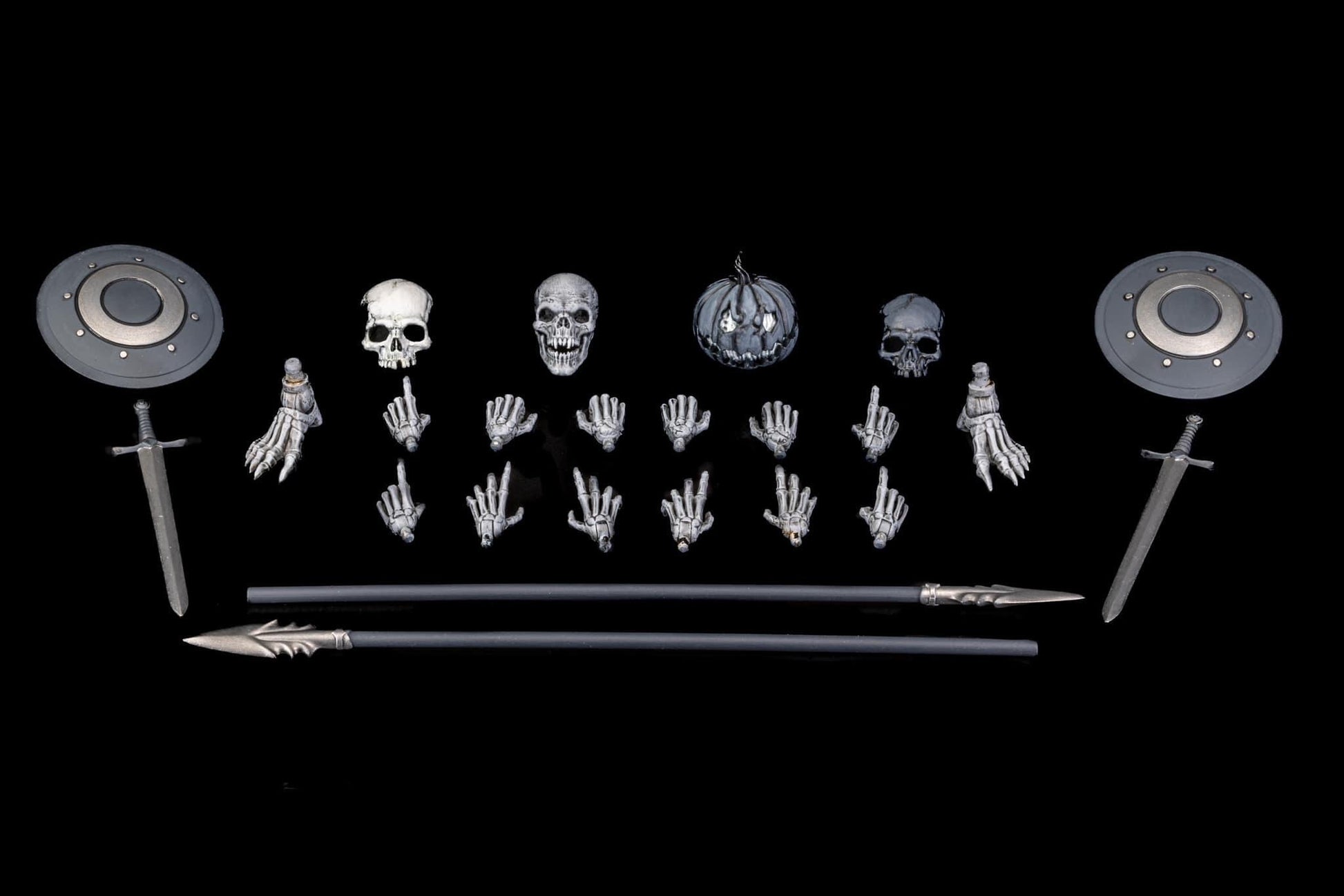 In addition to these heads and masks, the Graveyard Skeletons set also includes