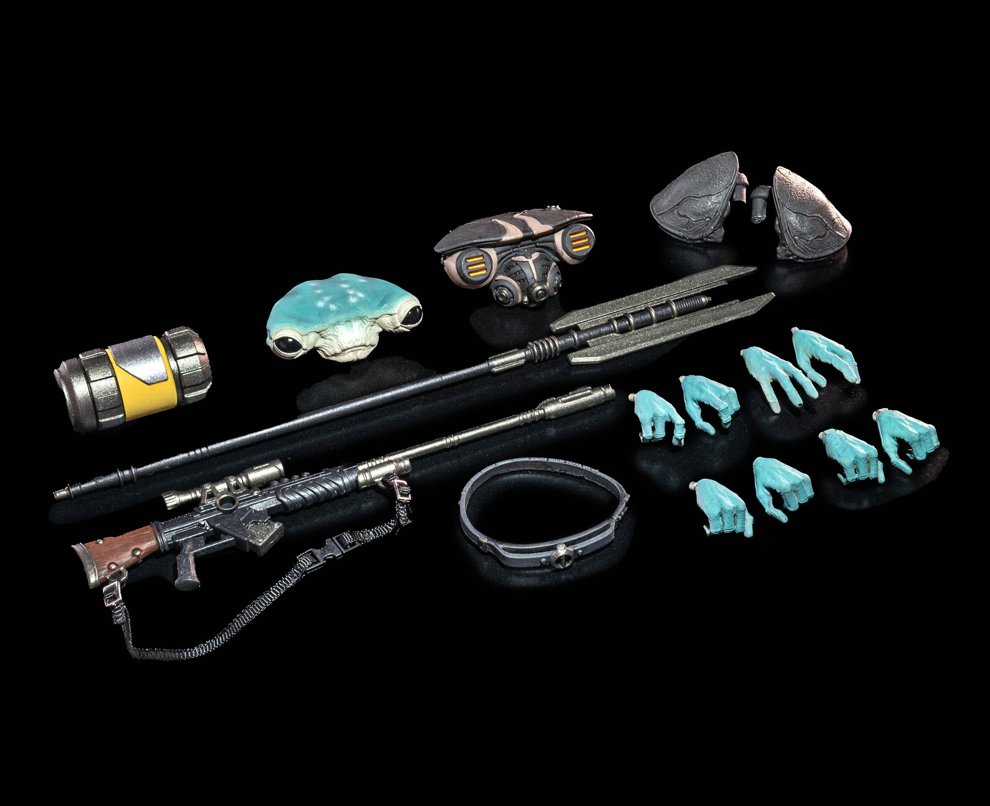 - Accessories: Long range rifle, prod stick, cannister