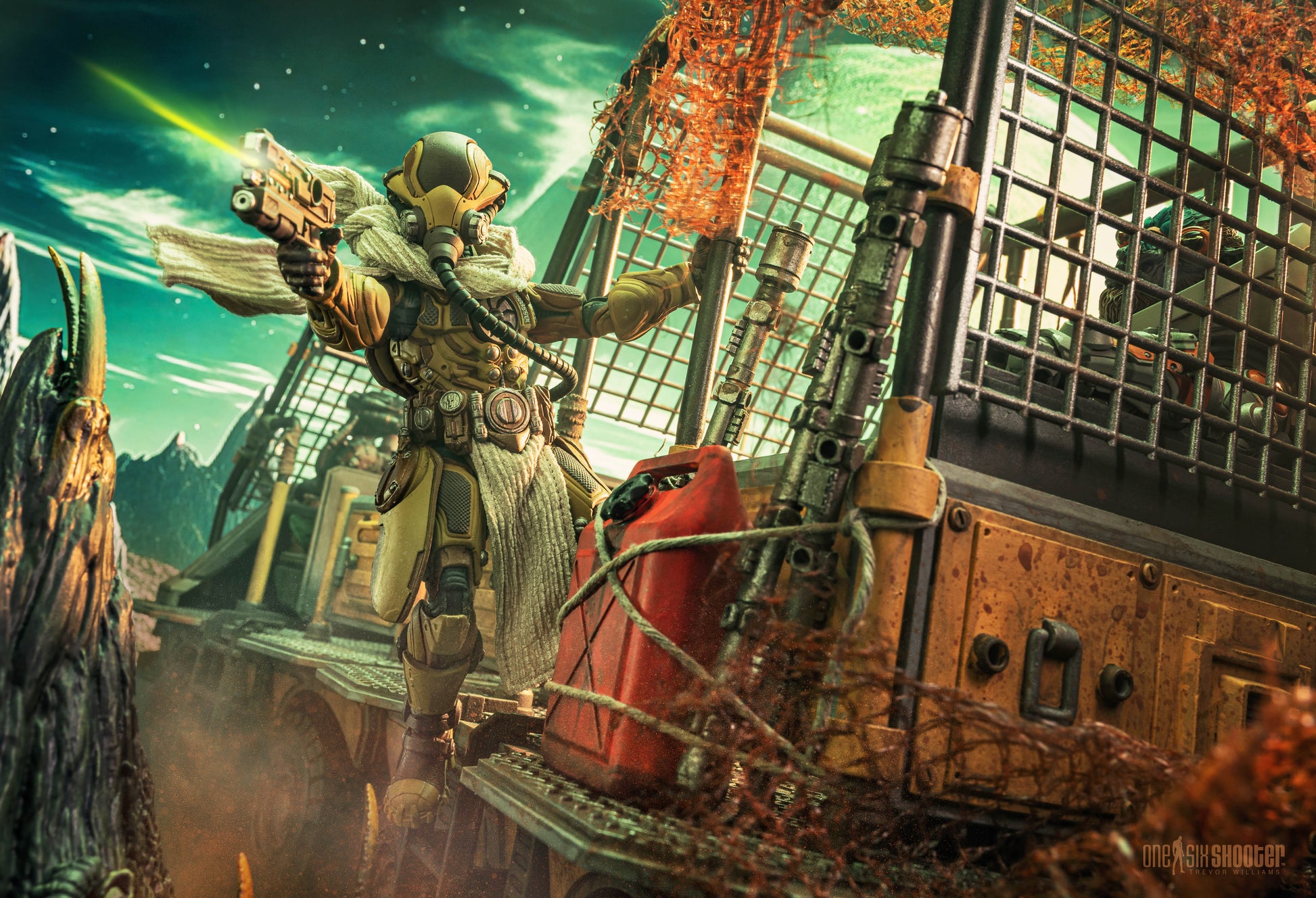 Salvaging as much of the T.U.5.C.C.-issued equipment from their ship as they could, including a pair of Hostile Environment Suits and a small arsenal of weaponry and defensive gear, the pair left their damaged vessel and set out into the harsh terrain of Thraxxon.