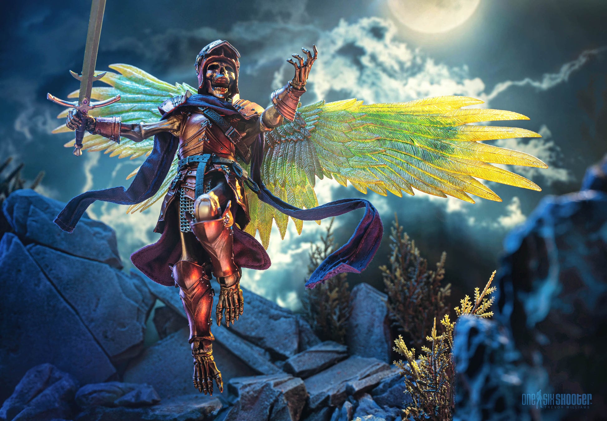 Casualties of the First Great War, these defeated angelic warriors of Cirrus were cut down by Maxillius the Harvester and then resurrected by the magic of Necronominus. These undead angels became some of Necronominus’ most powerful followers and they were banished with him when the Dark Four were defeated by the Great Beasts. Immediately distinguishable by their golden bones, these fallen angels still possess their feathered wings as a cruel mockery of the celestial beings they once were.