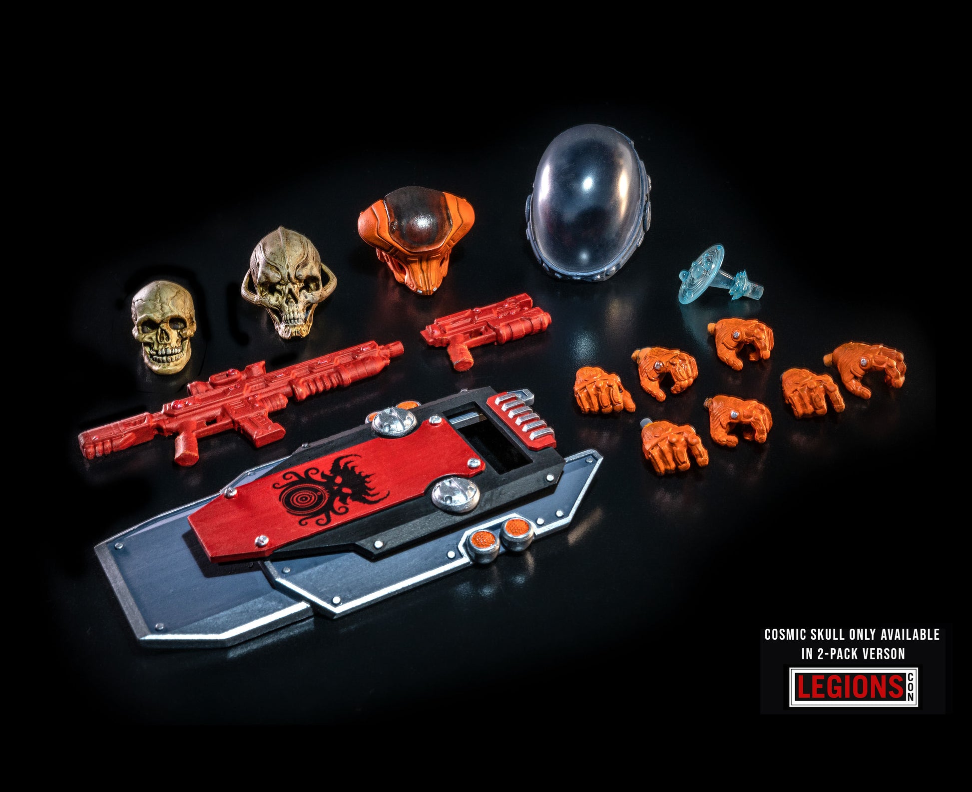 - Additional Heads: Yes - skeleton head with movable jaw (like Malleus), T.U.5.C.C. helmet head - plus a "bone" version of the Khronnen skull that is only in the LegionsCon show edition