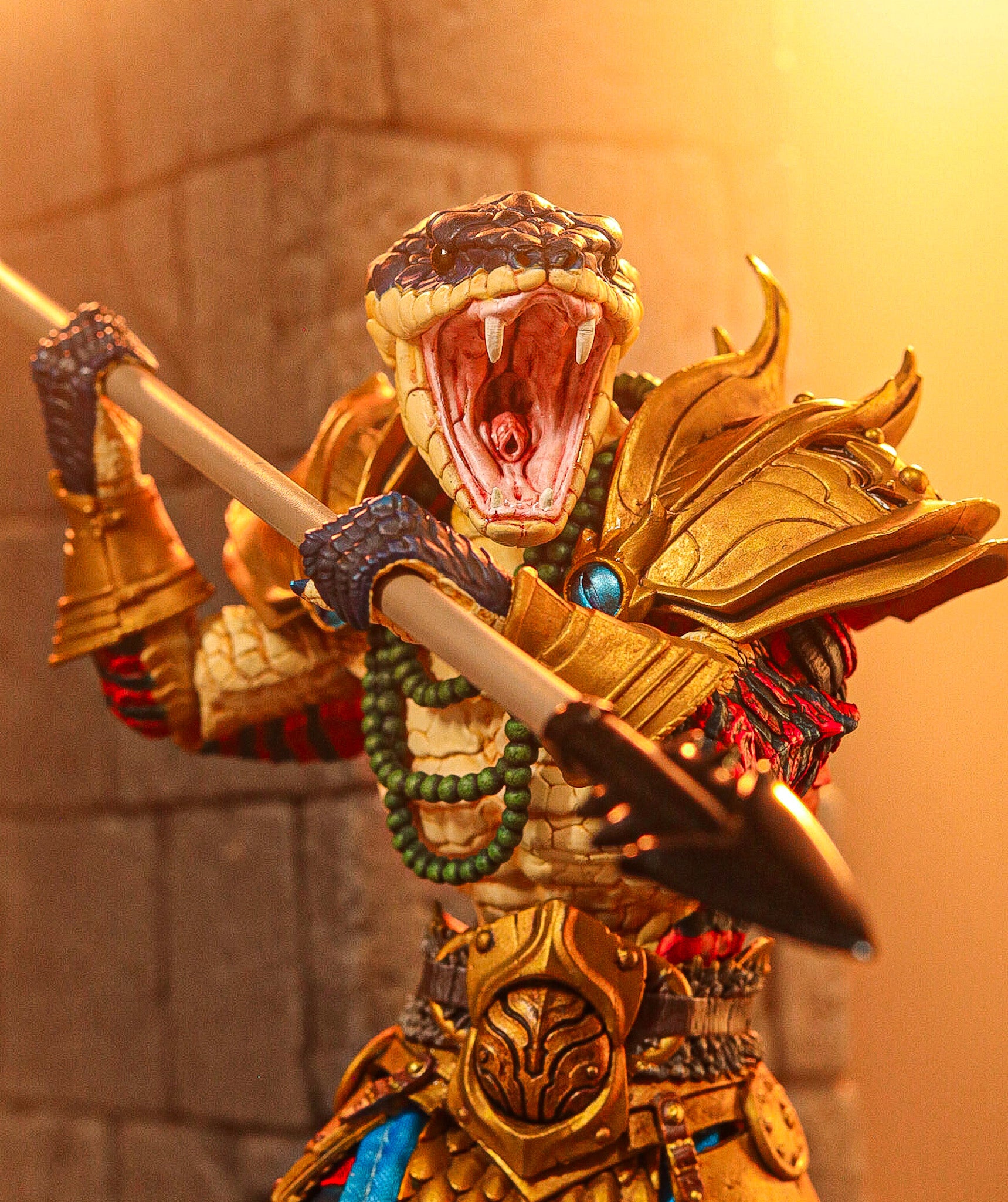 In the First Age of Mythoss, the forces of Bassylia included numerous members of the Coatl, a diverse race of reptilians whose features mirrored that of Bassylia herself. While this race has long since vanished from the Realm, records kept in the Library of Agbendor detail a society that was structured and disciplined. Born bipedal, young Coatlyans often served as workers or soldiers, including the extensive ranks that were known as the Ninian Infantry. As Coatlyans grew older or gained more knowledge, they shed their legs in favor of serpentine lower bodies and rose to become Royal Guards, High Mages, or other honored positions serving the Winged Serpent.