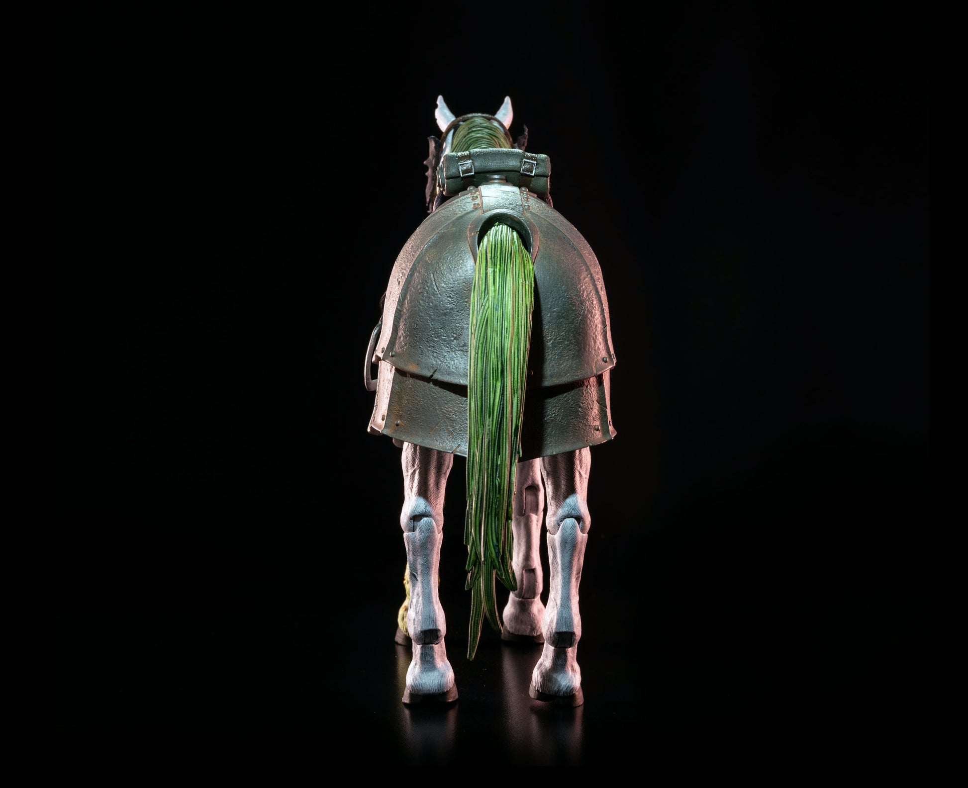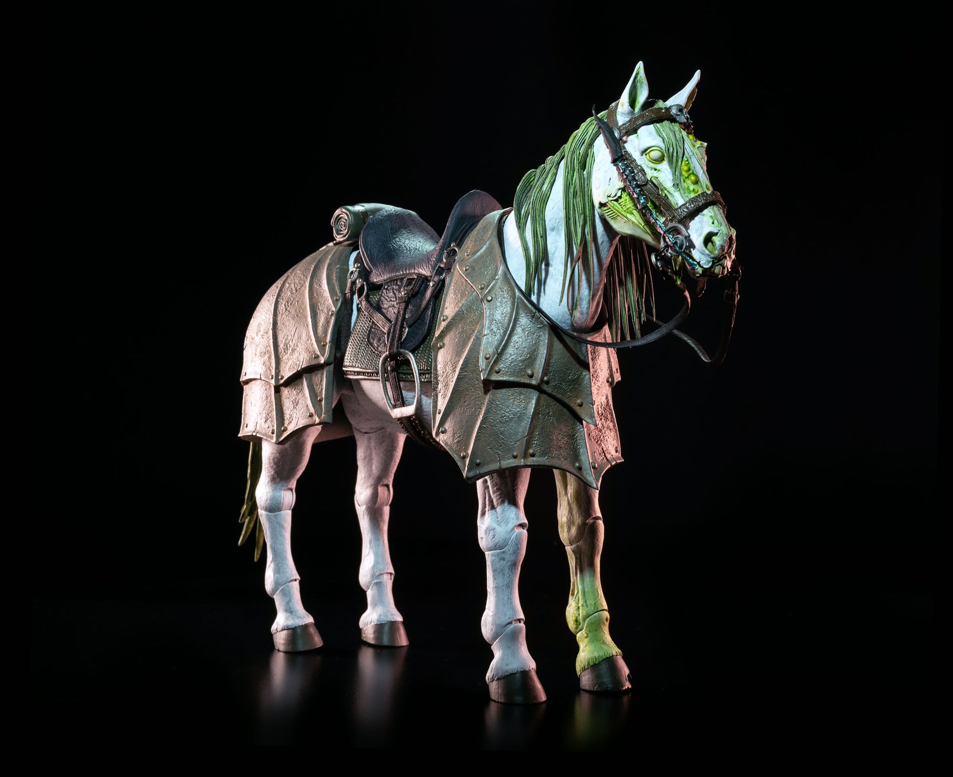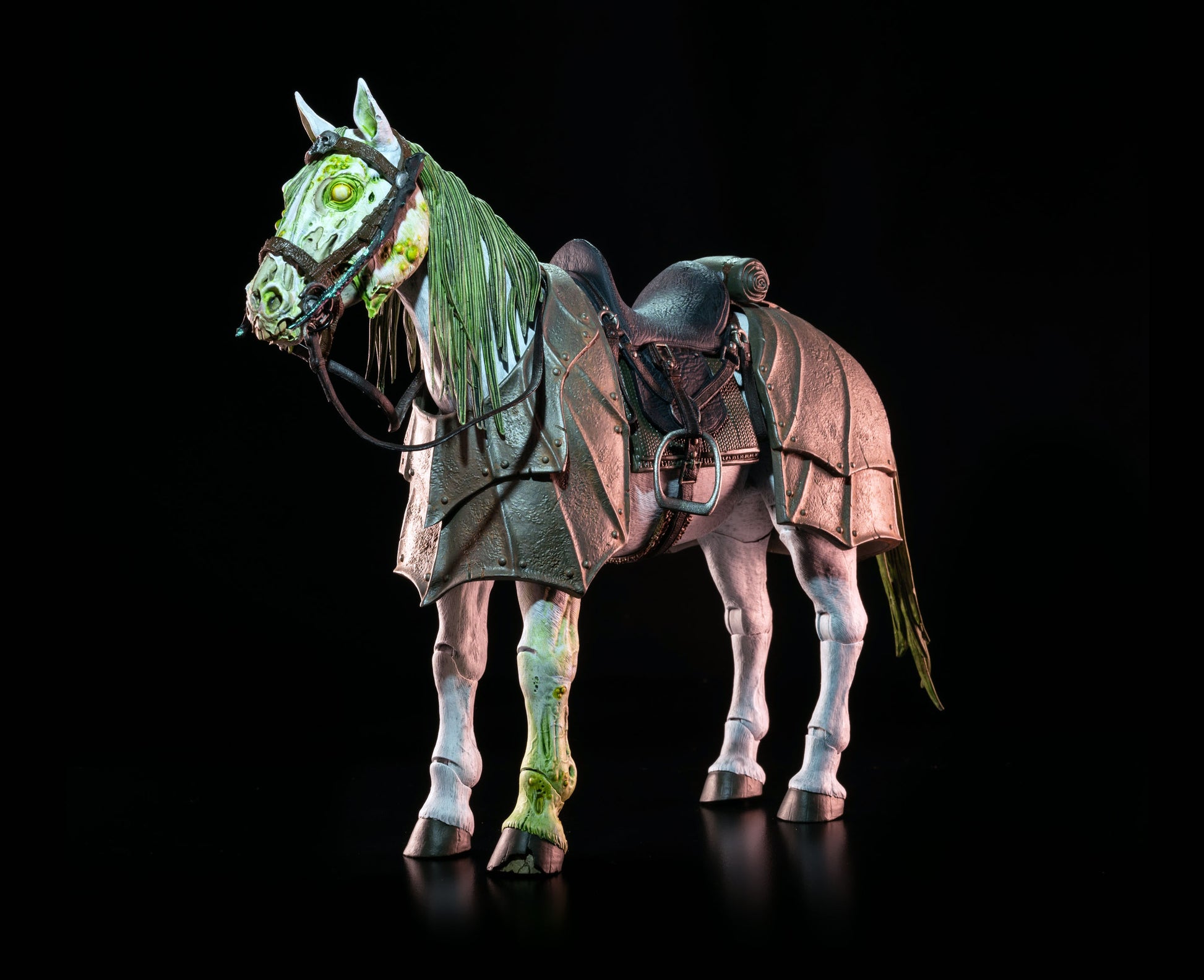 Triumphantly riding atop his rotting horse Phlogeus, Poxxus travels the roads of Mythoss with the intention of poisoning the realm and all those that live within.