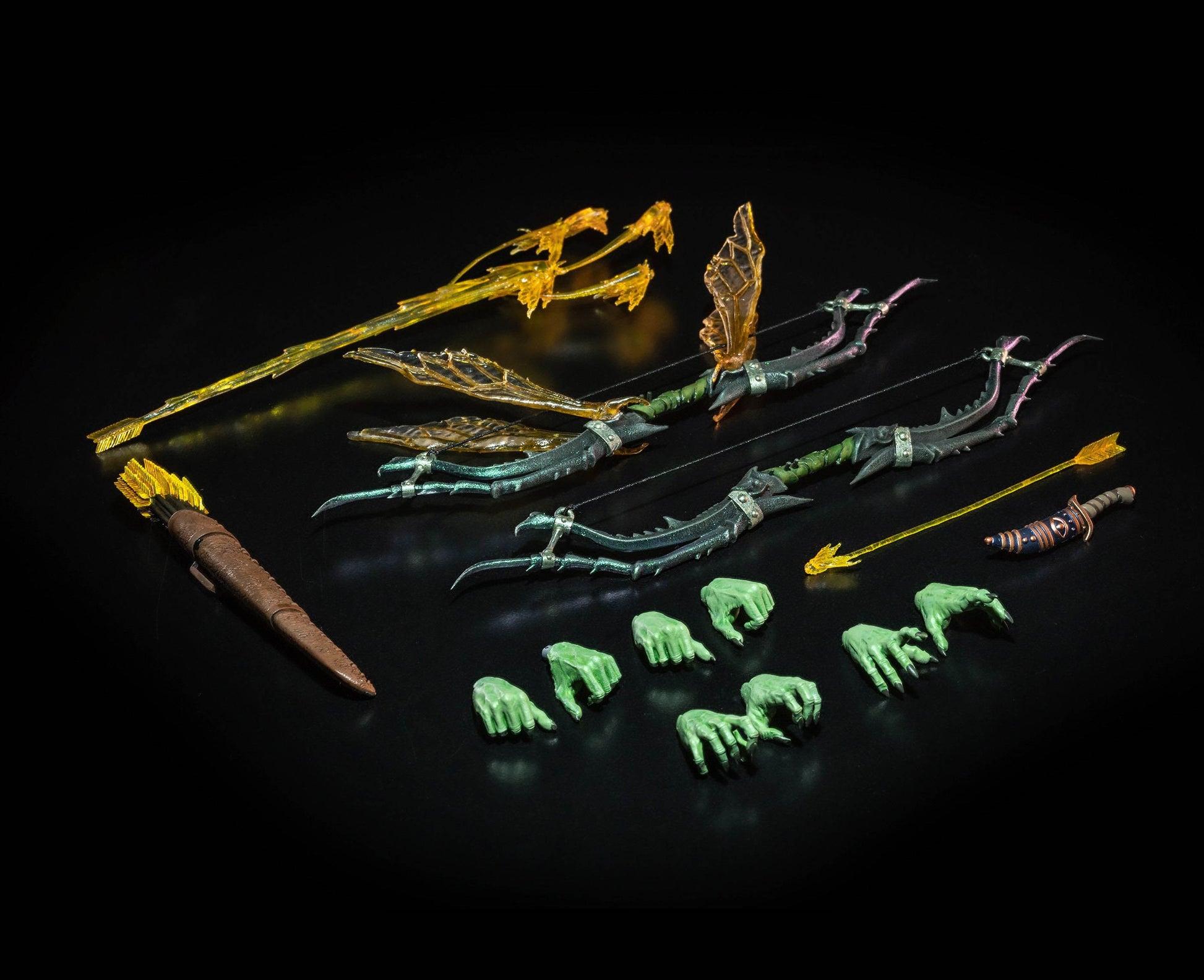 - Accessories: Plaguesayer bow (2 versions), 2 magical arrow effects, quiver, 4 sets of hands