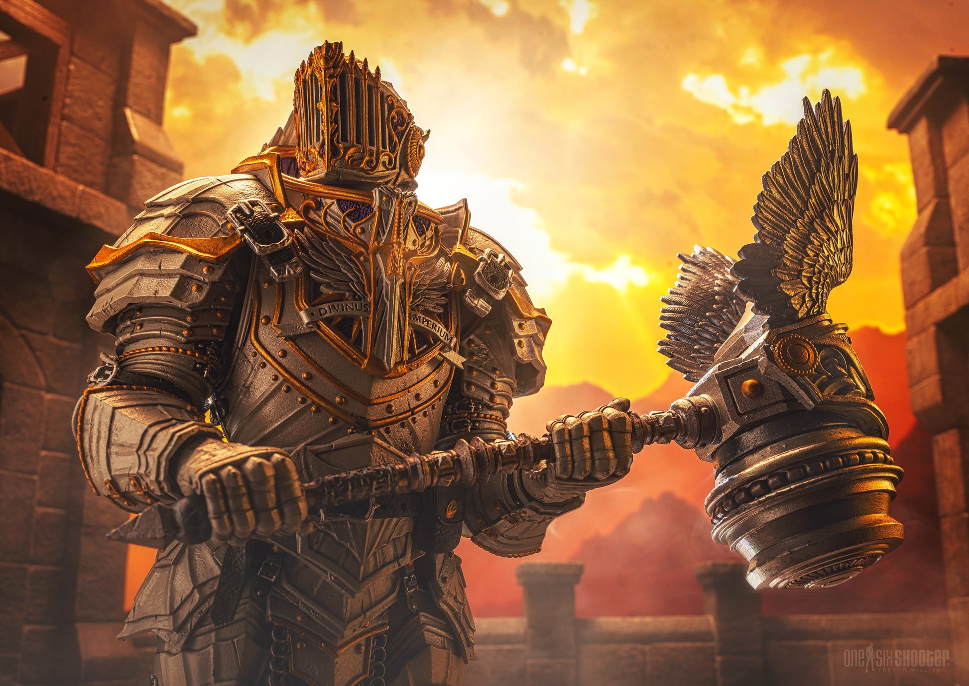 Once as evil and savage as the rest of the Impure, the Ogre named Ucczajk was visited in his sleep by a vision of a golden bird wreathed in flames that cleansed rather than consumed. Waking from his dream, Ucczajk immediately made his way to Eathyross. Seen as a threat and turned away, the Ogre found a simple hut in the mountains. Here he made his home, combing over prayer books and collecting trinkets left behind by a mystic who had found enlightenment many years prior. Travelers through the land told the strange tale of the remote hut and the devout Ogre who now prayed to Eathyron. These tales eventually made their way to Sir Gideon Heavensbrand, and the leader of the Order sought out the Ogre and bade him return with him to the Crowned City. Today, the Paladin known as Sir Ucczajk is one of the most faithful, and most powerful, warriors fighting for the Legions of Light..