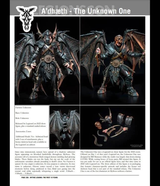 This deluxe, hardcover book features over 360 pages of images and information covering the first decade of the Mythic Legions line, with pages for every figure released during that span along with character information and behind-the-scenes details on these toys.