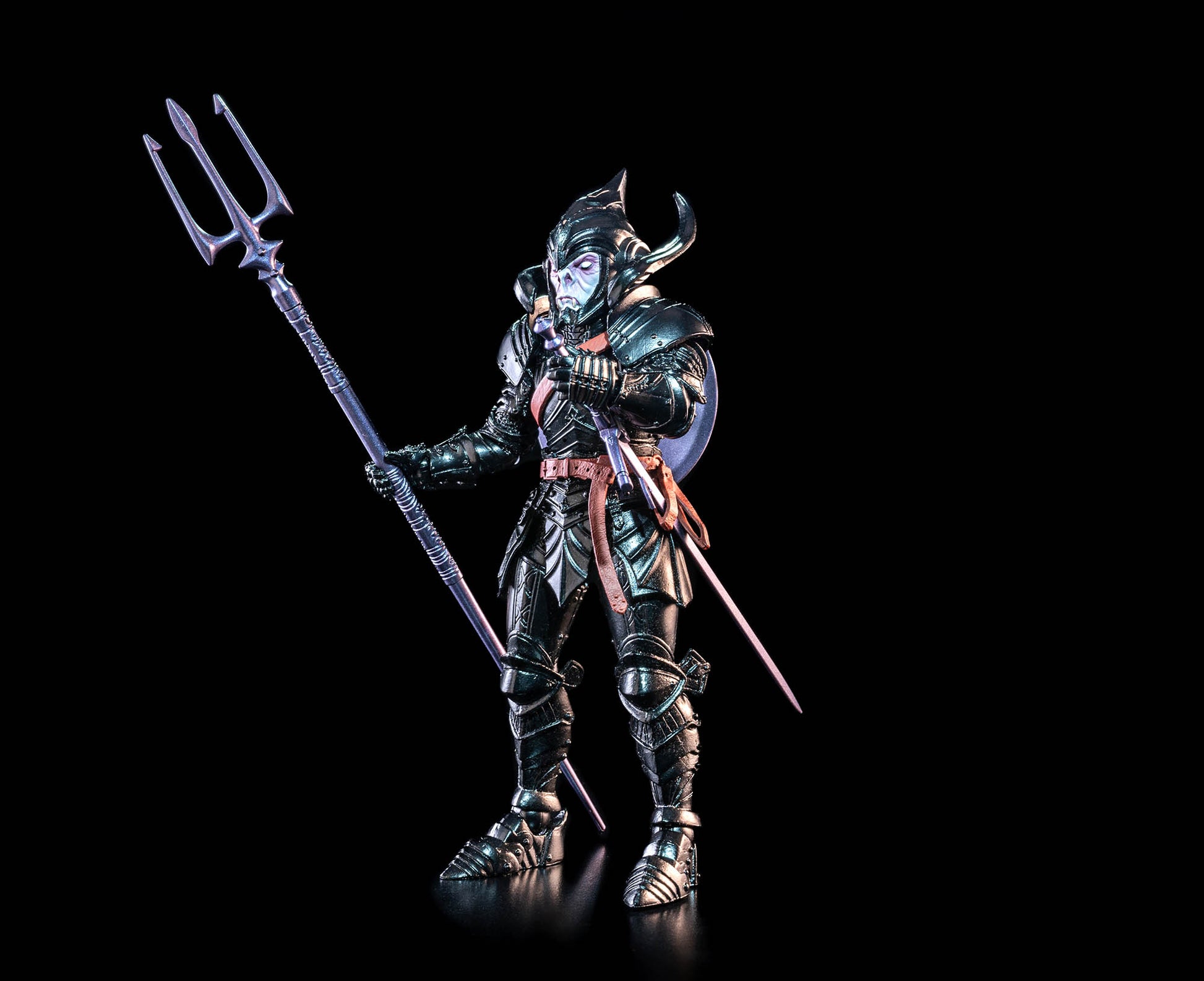 The vampires of Illythia’s Brood make their home in the remote region known as The White Spine. Protecting the gates to the black palace of the vampires are the tireless guardians known as the Vampire Phalanx. These black-armored soldiers use their shields to form an impenetrable wall, while the long tridents they wield can be thrust forward to impale any who get too close. Perfect coordination along with vampiric strength and reflexes make these guardians a formidable force that ensures the protection of the vampiric royalty seated within the Bloodless Throne.
