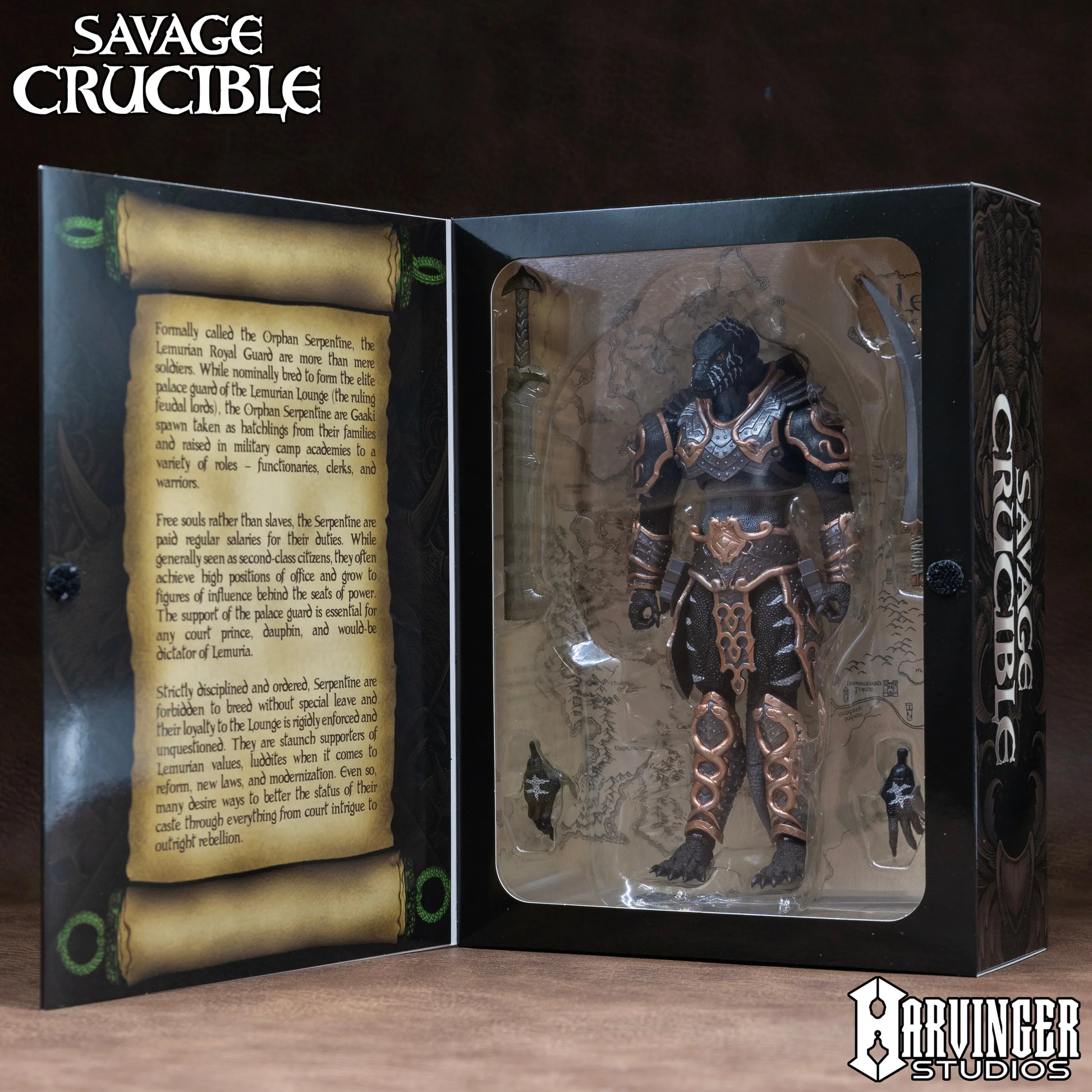 This 6-7 inch scale, ultra articulated action figure will come in a highly detailed window box, with character-specific packaging details and accessories. The final product may vary slightly from the prototype image shown. All final accessories included may not be shown in the image. **Alternate head sculpt sold separately in LEMURIAN ARMORY PACK #2**